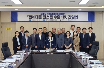 관세대응 원스톱 수출 119 간담회는 미국 관세 조치가 예상되는 식품, 화장품 등 제주지역 6개 소비재 수출기업과 함께 진행했으며, 원스톱 관세대응 지원본부 출범 이후 세 번째 현장 방문이다.