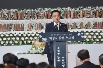 최상목 대통령 권한대행 부총리 겸 기획재정부 장관은 18일 오전 11시 전남 무안국제공항에서 열린 '12.29 제주항공 여객기 참사 희생자 합동 추모식'에 참석해 헌화와 묵념으로 희생자들의 넋을 기리고 유가족들을 위로했다.