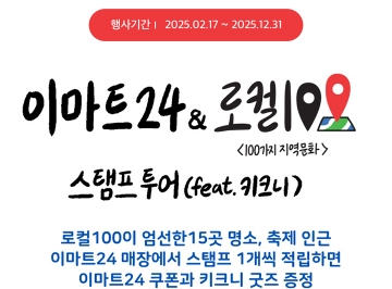 특히 올해 12월 31일까지 '로컬100 스탬프 투어'를 진행하는 바, 누구나 '이마트24' 응용프로그램(앱)을 통해 참여할 수 있다.