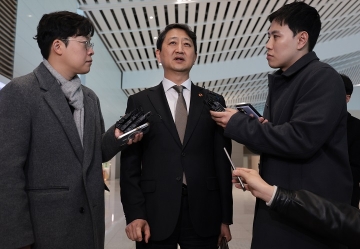안덕근 산업통상자원부 장관이 26일 인천국제공항 제2여객터미널에서 미국의 관세 조치에 대한 한국 예외 요청과 양국 경제 협력 방안 등을 논의하기 위해 미국 워싱턴 DC로 출국하며 취재진 질문에 답하고 있다. 2025.2.26