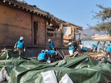 경기 포천시 이동면 노곡리 공군 전투기 오폭 사고 현장에서 장병들이 복구작업을 하고 있다. 2025.3.10.