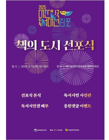 이번 선포식에서는 '책의 도시 김포' 선포, 상징기 전달, 시립소년소녀합창단의 축하공연과 함께 '2025 대한민국 독서대전'의 홍보대사 위촉식을 진행한다.