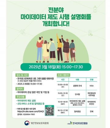 개인정보보호위원회는 지난 2023년 3월 개인정보 보호법 개정 때 도입한 전 분야의 마이데이터 조항을 그간의 경과기간을 거쳐 13일 시행한다고 밝혔다.