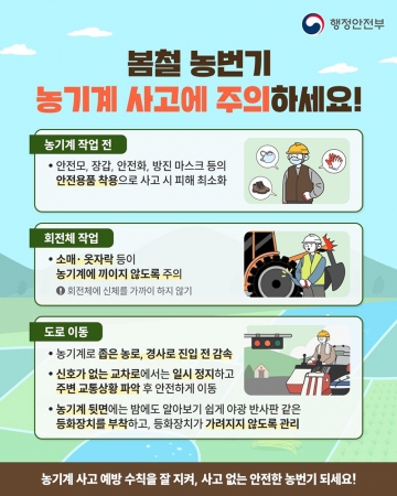 농기계 사고예방 수칙을 잘 지켜, 사고 없는 안전한 농번기 되세요!