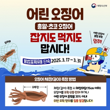 건강한 바다, 풍요로운 수산업을 위해 어린 오징어 불법 포획·유통 근절에 함께해주세요!