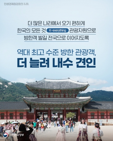 역대 최고 수준 방한 관광객, 더 늘려 내수 견인