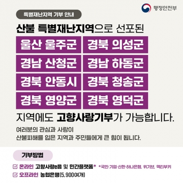 산불 특별재난지역으로 선포된 아래 지역에도 고향사랑기부가 가능합니다!