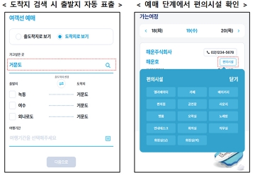 아울러 원하는 도착지를 검색하면 해당 도착지로 가는 모든 여객선이 출발지에 자동 표출돼 더욱 쉽게 출발지를 입력할 수 있다. 예매 단계에서 여객선 내 매점 등의 편의시설 유무도 알 수 있다.