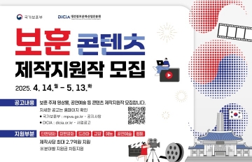 지원 사업 참여를 위해서는 이날부터 다음 달 13일까지 보훈부 누리집 또는 수탁기관인 대전정보문화산업진흥원의 누리집을 방문하거나, 포스터에 첨부된 정보무늬(QR)를 통해서 신청할 수 있다.