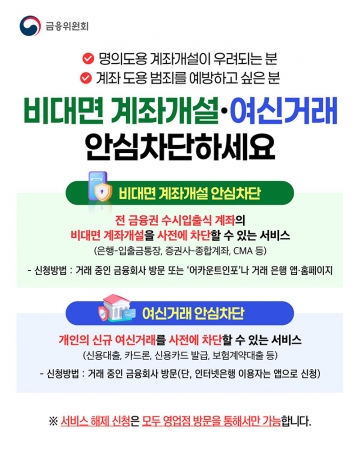 전 금융권 수시입출식 계좌의 비대면 계좌개설을 사전에 차단할 수 있는 서비스.