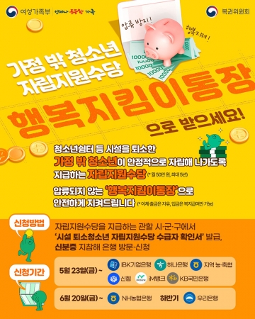 가정 밖 청소년 자립지원수당 안전하게 받아요!