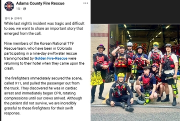 한편 미국 소방당국의 콜로라도주 아담스 카운티 소방서는 공식 SNS 계정에서 "한국 구조대원들의 구조행동은 모든 소방관이 따라야 할 교과서 같은 대응이었다"면서 "즉각적인 CPR과 현장 통제로 신속한 구조활동을 할 수 있었다"면서 현장 사진과 함께 감사를 전했다.