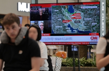 22일 인천국제공항 제1여객터미널 입국장 내 TV에 미국의 이란 핵시설 공습 관련 뉴스가 나오고 있다. 2025.6.22.