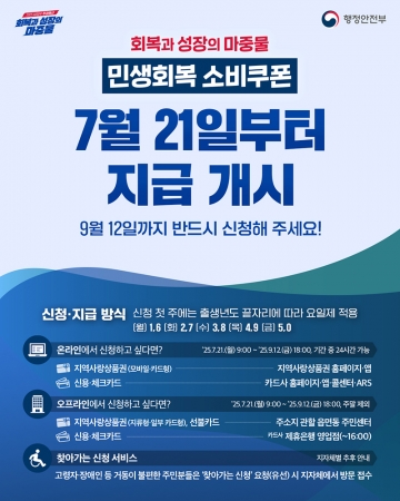 민생회복 소비쿠폰 7월 21일부터 지급 개시