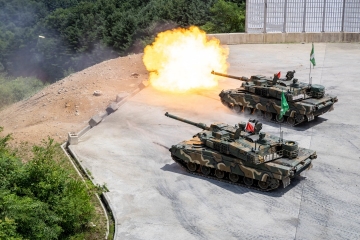 육군 11기동사단 K2 전차포사격 훈련 모습.