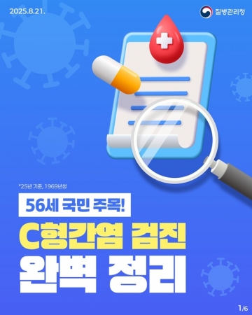 → 2025년부터 56세(25년 기준, 1969년생) 국민은 일반건강검진 시 C형간염 항체검사를 받을 수 있습니다.