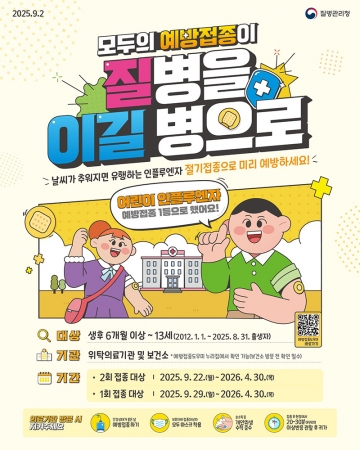 날씨가 추워지면 유행하는 인플루엔자 절기접종으로 미리 예방하세요!