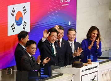 한편, 이 대통령은 투자서밋 행사에 앞서 뉴욕증권거래소 개장 시간인 오전 9시 30분에 맞춰 주식시장 개장을 알리는 '링 더 벨' 타종 행사에 참여했다.