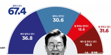 여론조사꽃이 29일 발표한 이재명 대통령 국정운영 평가에서 긍정평가가 67.4%, 부정평가는 31.6%로 집계됐다. ‘모름/무응답’은 1.0%였다.