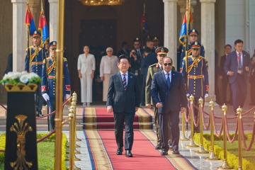 이어 "저도 이집트가 가자지구 휴전과 재건, 나아가 중동 평화를 위해 노력하고 있음을 높이 평가했으며 한국 정부도 가자 난민이 겪는 인도적 위기를 해결하기 위해 이집트와 계속 협력하겠다는 의사를 전했다"며 "양국은 서로의 역할을 지지하며 동시에 국제평화를 위해 연대하기로 했다"고 설명했다.