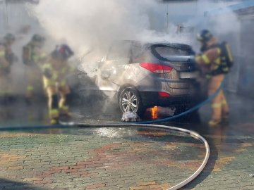 이날 A씨의 차량 안에 있던 휴대용 부탄가스가 폭발하면서 화재가 발생한 것으로 알려졌다.