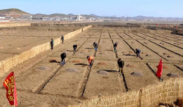개성시 룡산협동농장에서 벼 모판 씨뿌리기 [조선의오늘 제공]